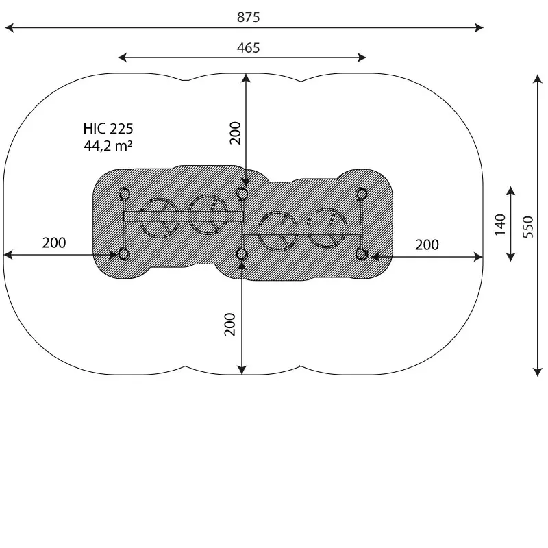 Dimensions 465 × 140 × 275 cm