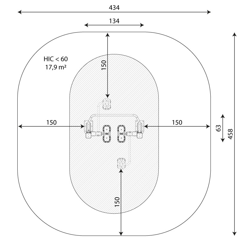 De diameter van het Robinia hout voor de fitnesstoestellen is gemiddeld 22 cm.